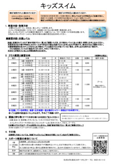 ※水慣れ、板キック、息なしクロール・背泳ぎ10Mの練習をご希望の方は対象クラスにお申し込み下さい。