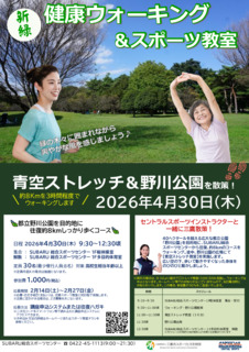 雨天の場合は、9:30より屋内で【ストレッチ教室(30分)】のみ実施し、ウォーキングは中止となります。